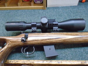 LAMINATE THUMBHOLE STOCK MODEL WITH 16” BARREL. INCLUDES WILDCAT PANTHER SOUND MODERATOR AND FREE HAWKE VANTAGE 4-16×50 SCOPE. COMES WITH ONE 5-SHOT AND TWO 10-SHOT MAGAZINES.