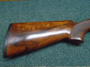 30” SPORTER WITH FLEUR DE LYS STAMP. MAKERS CASE AND FULL SET OF EXTENDED CHOKES. STOCK LENGTH CURRENTLY 14 3/8”. WEIGHT 7lb 13oz. MANUAL SAFE.